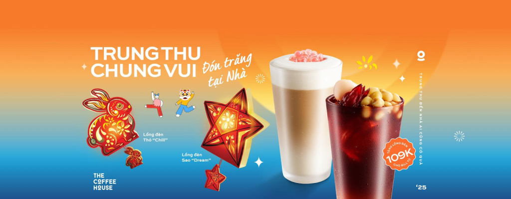 Nếu như các chiến dịch Trung Thu trước đây của nhiều thương hiệu F&B thiên về bánh hoặc thức uống, thì The Coffee House đã chọn một lối đi khác biệt: kết hợp combo “nước mát – món ngon – đèn xinh”. Đặc biệt, món quà tặng kèm – chiếc đèn lồng 3in1 – vừa mang nét truyền thống, vừa là phụ kiện trang trí xinh xắn, tạo cảm giác Trung Thu gần gũi nhưng mới mẻ. Chiến dịch triển khai đồng bộ cả offline tại cửa hàng và online qua app/website, cho thấy sự linh hoạt trong mô hình O2O, giúp khách hàng dễ dàng tiếp cận.